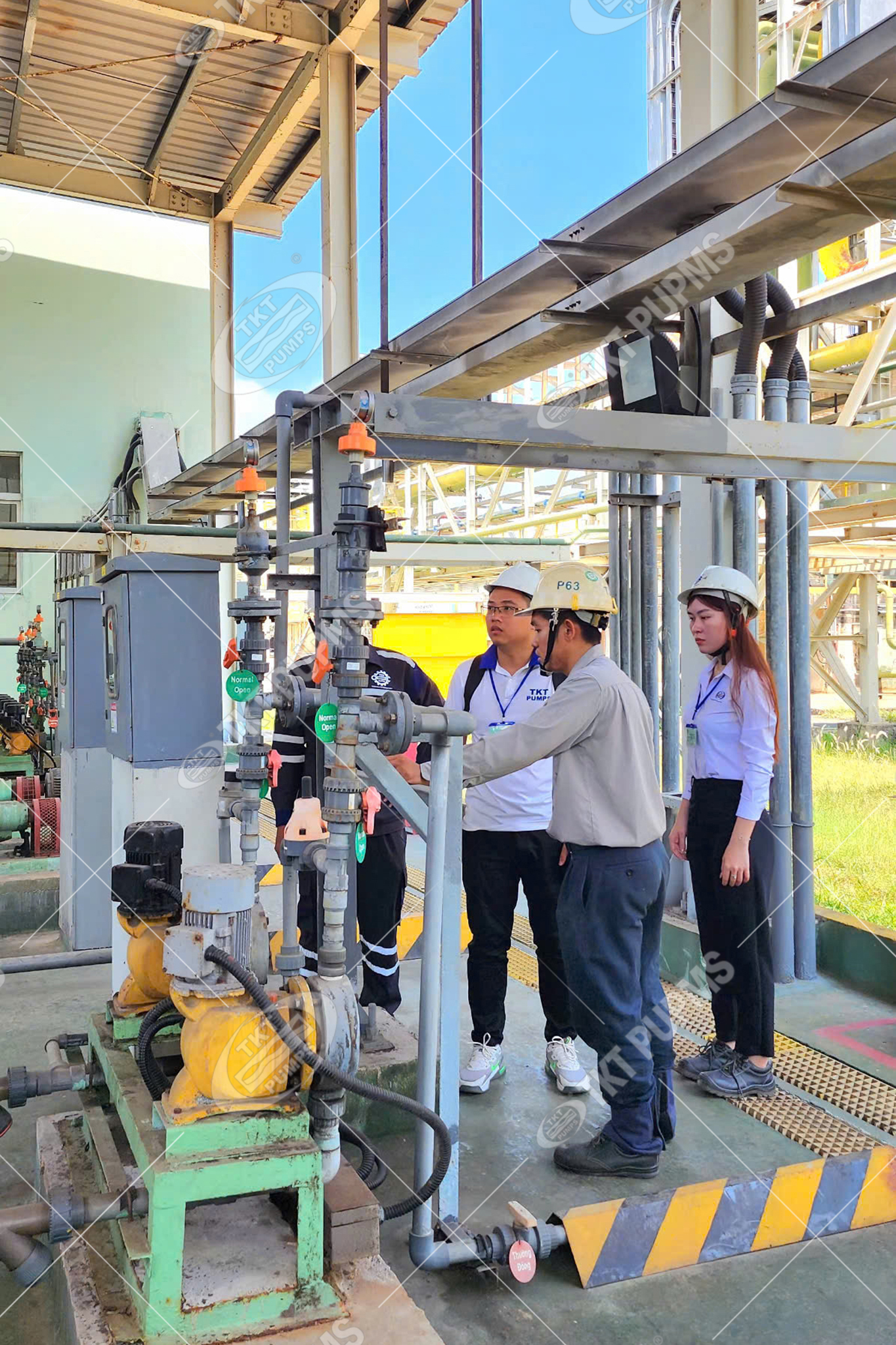 - Bối cảnh: Hệ thống sử dụng bơm ly tâm hóa chất FTI, hoạt động liên tục trong môi trường khắc nghiệt.