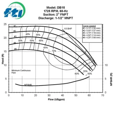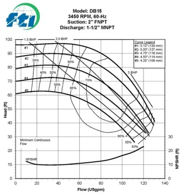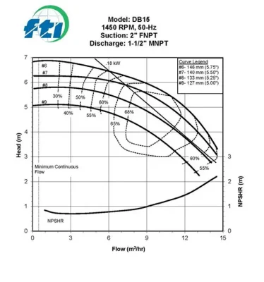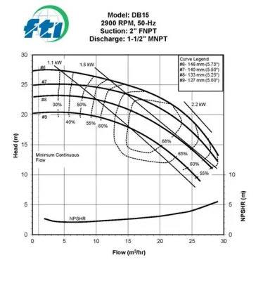 | Lưu lượng tối đa | 29.1 m³/h (136 gpm) tại tốc độ 2900 RPM |